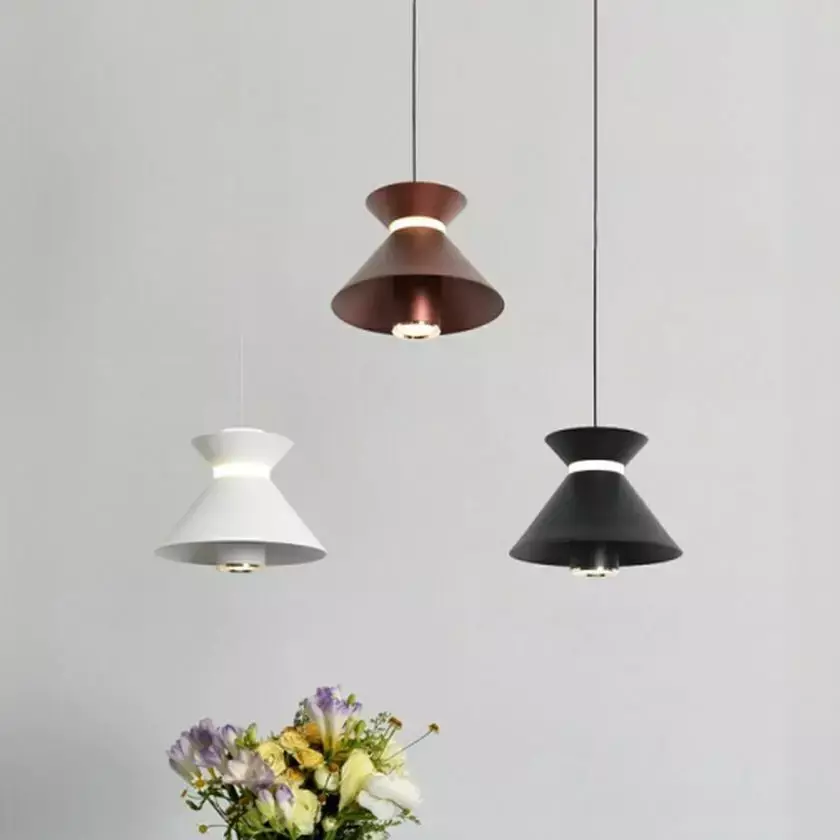 Araña colgante con estructura metálica y pantalla de cristal opalino, que brinda una iluminación suave en tono cálido (3000 K).